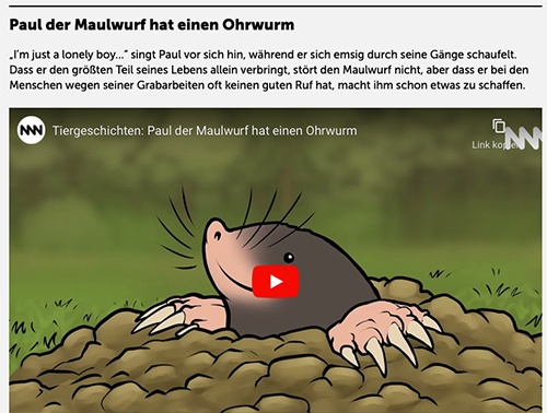 Mein Favorit aus den sechs TIERGESCHICHTEN ist »Paul der Maulwurf« … der mit seinen Ohrwürmern eine musikalische Klammer zwischen Paul Anka (»Lonely Boy«, 1958) und Billie Eilish (»Bad Guy«, 2019) spannt.