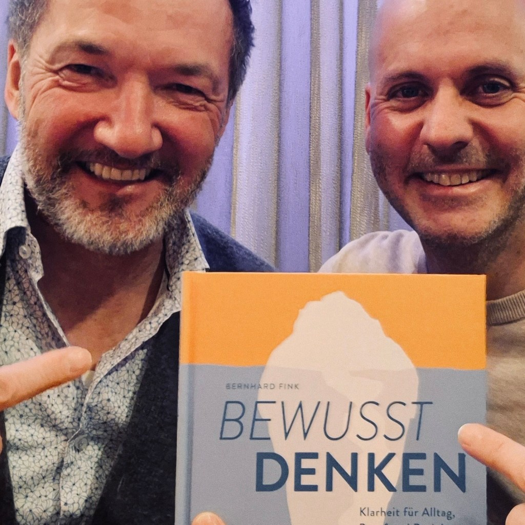 Bernhard Fink überreicht mir im Februar 2026 nach Erscheinen seines Buches „Bewusst Denken“ ein Exemplar mit persönlicher Widmung: