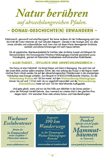 Job: Texte für 60-seitige Werbebroschüre der Donau Niederösterreich Tourismus GmbH. www.donau.com